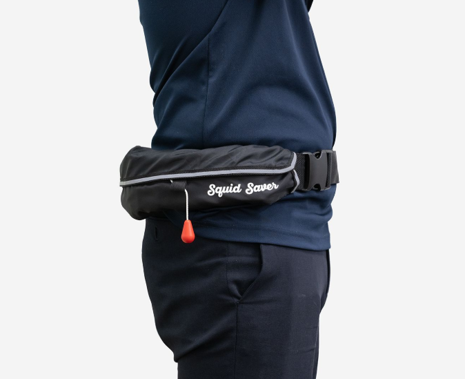 海に誤って落水した時でも自動的にライフジャケットが膨らんでくれると安心できますよね。このライフジャケットは自動膨張式を採用しており、カートリッジの水進入口から水が浸入し、カートリッジ内の感知素子が水を感知するとバネが伸び、その先にある自動膨張装置の針を押し上げ、ボンベに穴を開けガスが放出する仕組みになっています。そのため、浮き輪のように広がり、浮力を確保できる流れになっています。